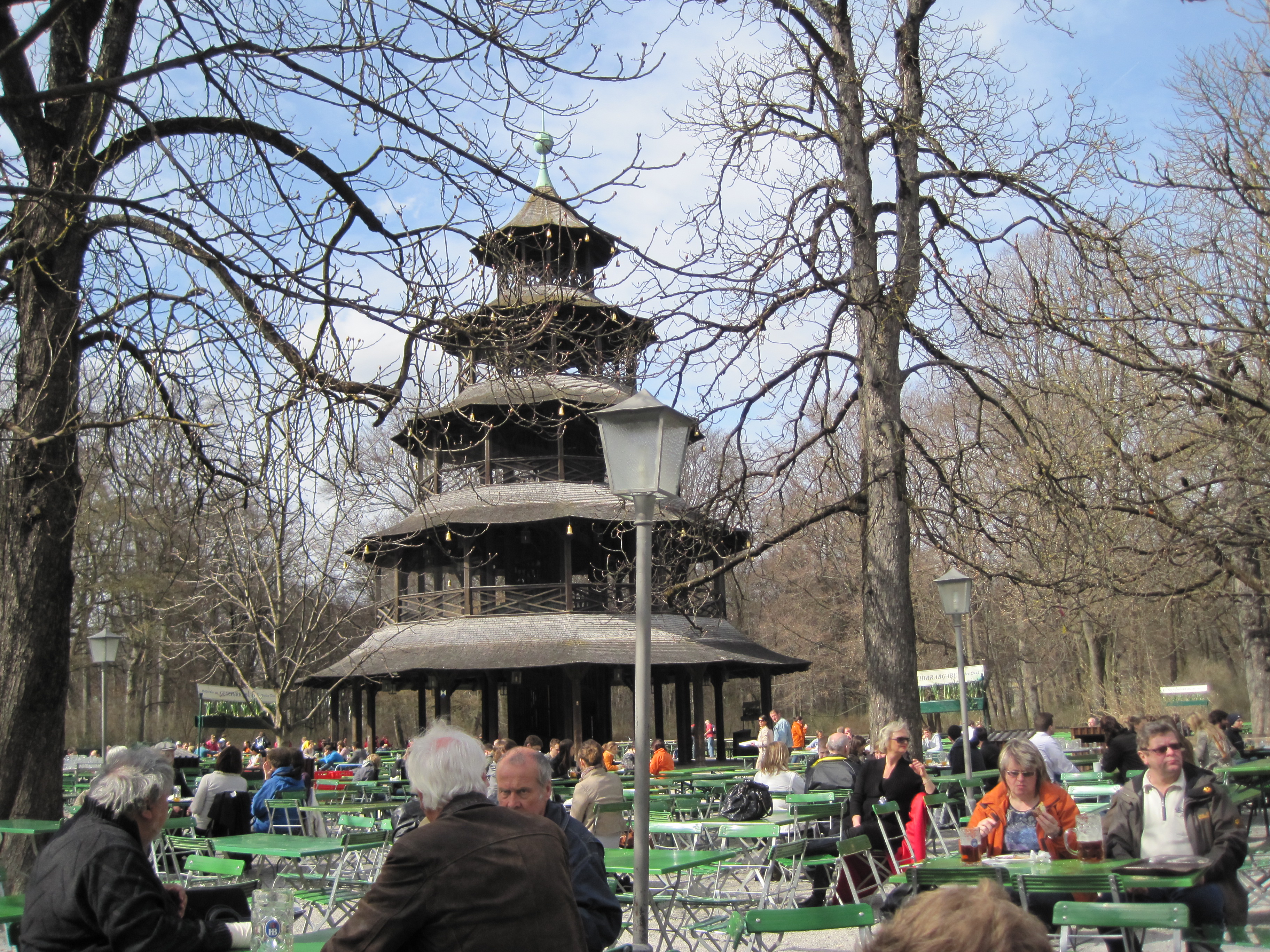 Our last day was spent seeing old Munich one last time. We ate lunch at the biergarten with the chinese style pavillion. Lest you think we were eating Chinese food, we were not. It is Bavaria after all. The Chinese tower is only a decoration. The food was all wurst, sauerkraut, potatoes and beer. The weather turned out fine.