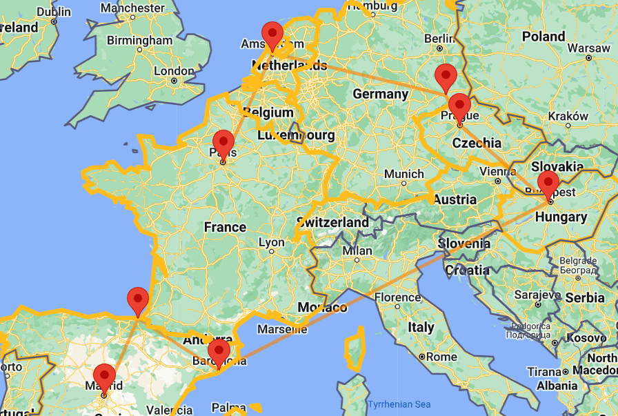 Nezzie and I have really enjoyed planning our route through Europe. We will be there for most of her winter break. Here is our plan