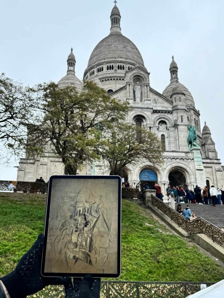 There were so many other wonderful stops on this tour, but I will close with Corey showing us Picasso’s version of Sacré Coeur and the inspiration just above.