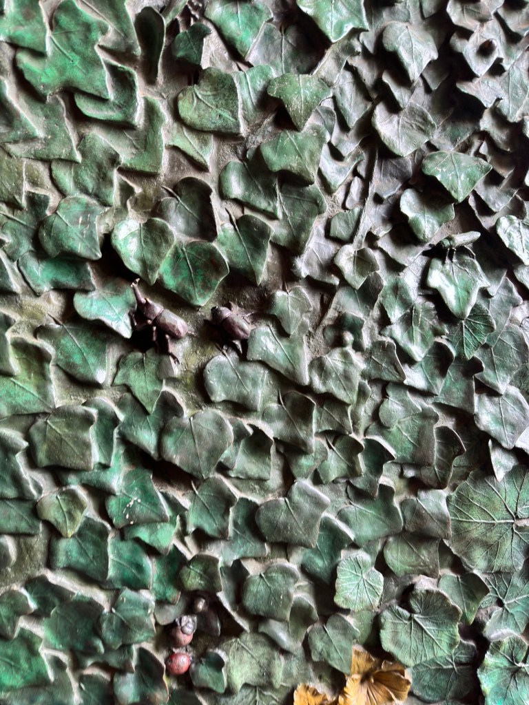 I also like the front door covered in sculptures of ivy and bugs.