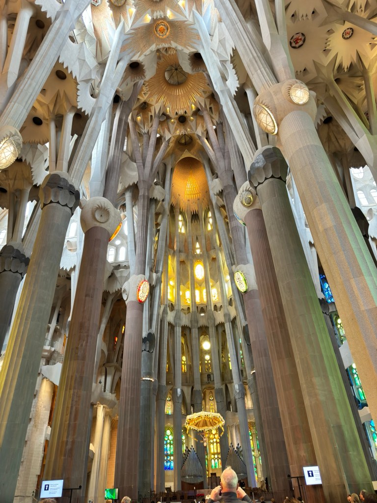 But the awe comes when you walk through the doors. It’s like walking into an expansive, magical forest. Gaudi’s inspiration from nature is clearly evident. The fact that it is made in cement or stone, is also stunning.