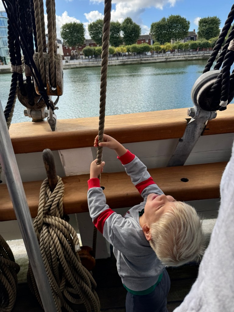 Today we all moved a little more slowly but got ourselves ready for our first activity – a tour of the Jeanie Johnston Tall Ship, a replica of the real Jeanie Johnston, one of the many ships that Irish people took to escape the famine in the mid-1800s for better lives in Canada and the U.S. What made the Jeanie Johnston unique was that it was Irish-owned and no one ever died on the ship.