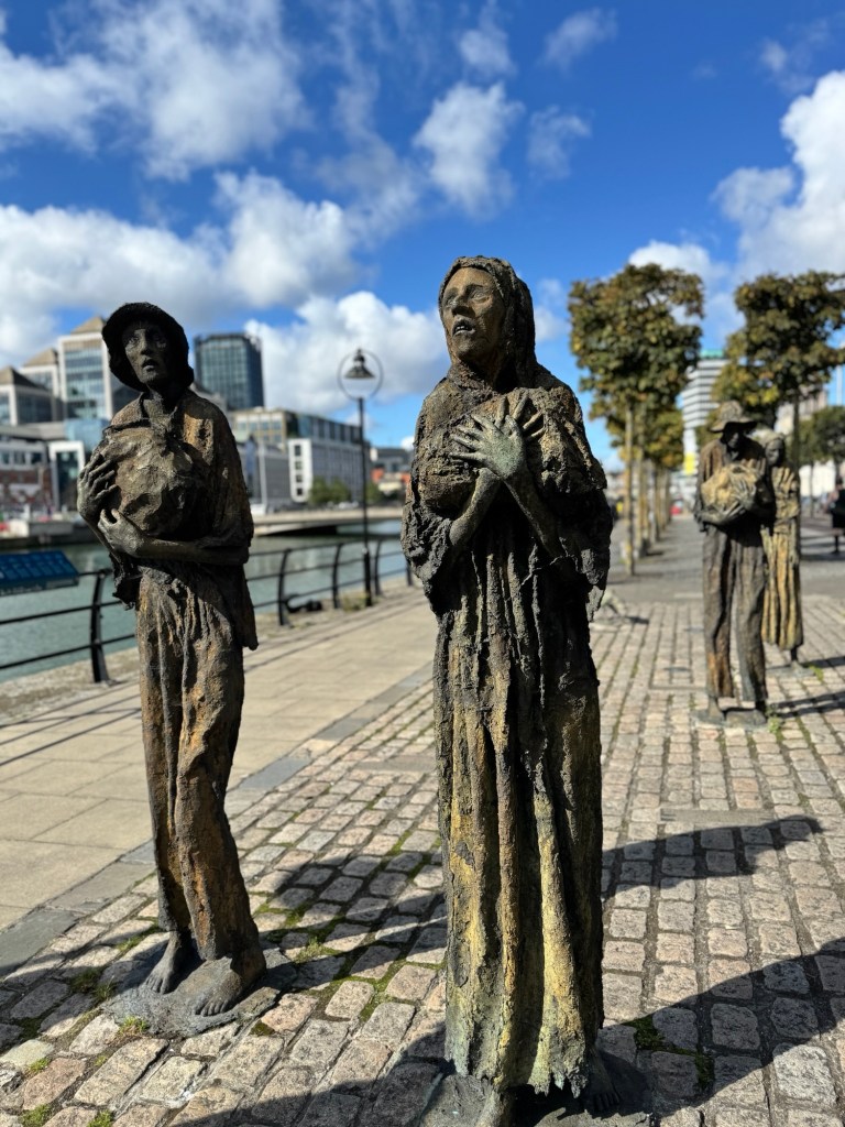 Given where we were at the Jeanie Johnston, Will, Nezzie and I did the reverse version of Rick Steves’ South of the Liffey walk. The first thing we saw was this striking Famine Monument.