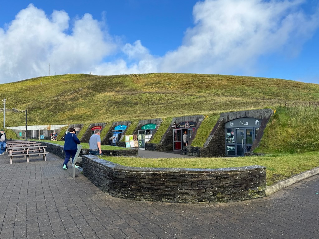 We were very excited that when we woke up, the nasty weather prediction seemed to prove untrue. Our BnB hostess commented that it rained overnight, so maybe the storm had passed. It was all sun and puffy clouds when we arrived at the Cliffs of Moher visitor’s center.