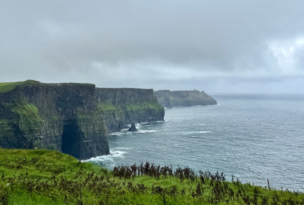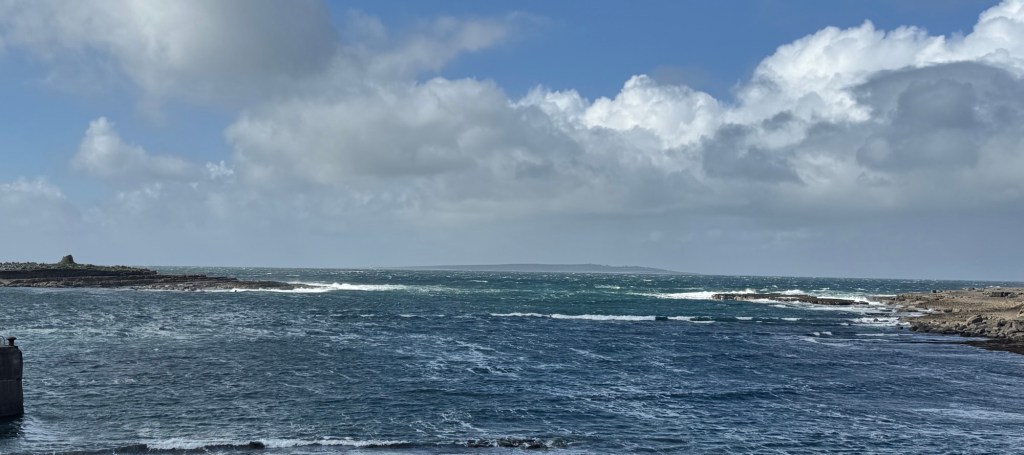I did ask a ferry employee if they still run in these rough seas. He said yes, because it is the only transportation to and from the islands, and people need to get there and back. But they did cancel the pleasure tour along the base of the Cliffs of Moher because they didn’t want a lot of seasick tourists. Views of the sea and cliffs from the pier: