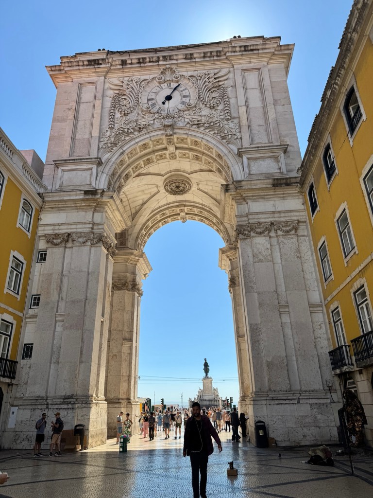 After leaving the tile museum, we took a taxi to the Praca de Commercio, Lisbon’s big riverfront town square. That was the start of Rick Steves’ self-guided Baixa walking tour.