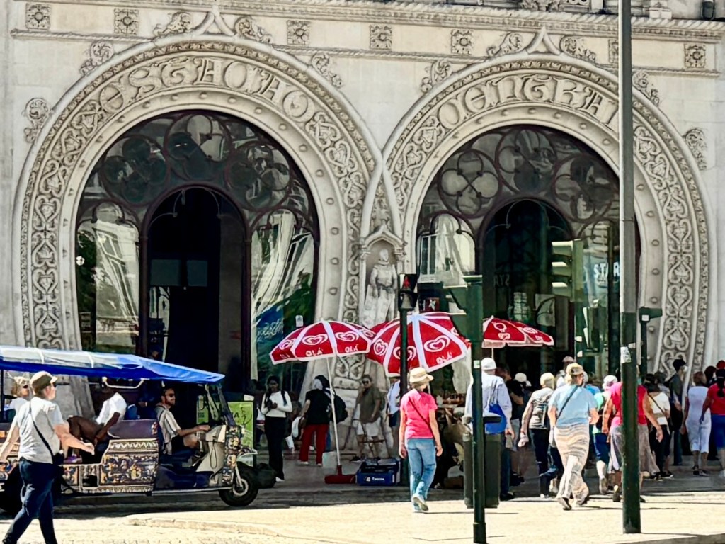 Continuing our walk, the nearby Rossio train station was built in the 1880s and is known for its ornate facade and horseshoe arches.